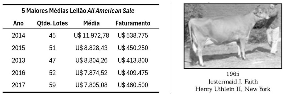 A vaca 2 vezes Campeã Nacional dos EUA, JESTERMAN J. FAITH, foi vendida no All American Sale de 1963 por um criador do Nebraska à Heaven Hill Farm (de Nova York). Animais lendários como SPRUCE AVENUE MARGS CYNTHIA, PINN BLONDE OAKLAND e BRAMPTON GARETH CAROM também passaram pelas pistas dessa leilão.